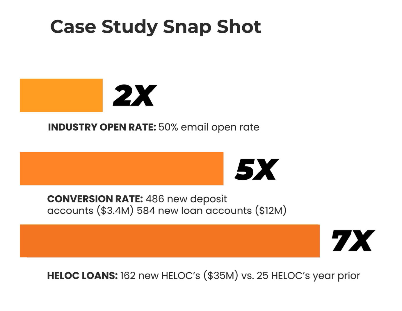 Embold Credit Union leaned into personalization with lifestyle segment-focused member journeys for its annual HELOC campaign. In previous years, promoting HELOCs in the same period generated 20-25 loans. Their new hyper-targeted and personalized approach created a 7X increase, with 162 loans and $35 million in new balances. And, those who opened campaign emails also opened 486 new deposit accounts (for $3.4 million) and 589 new loan accounts (over $12 million) during the same period.